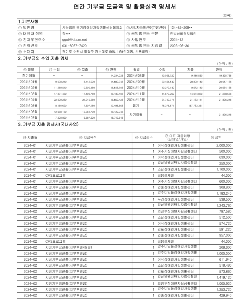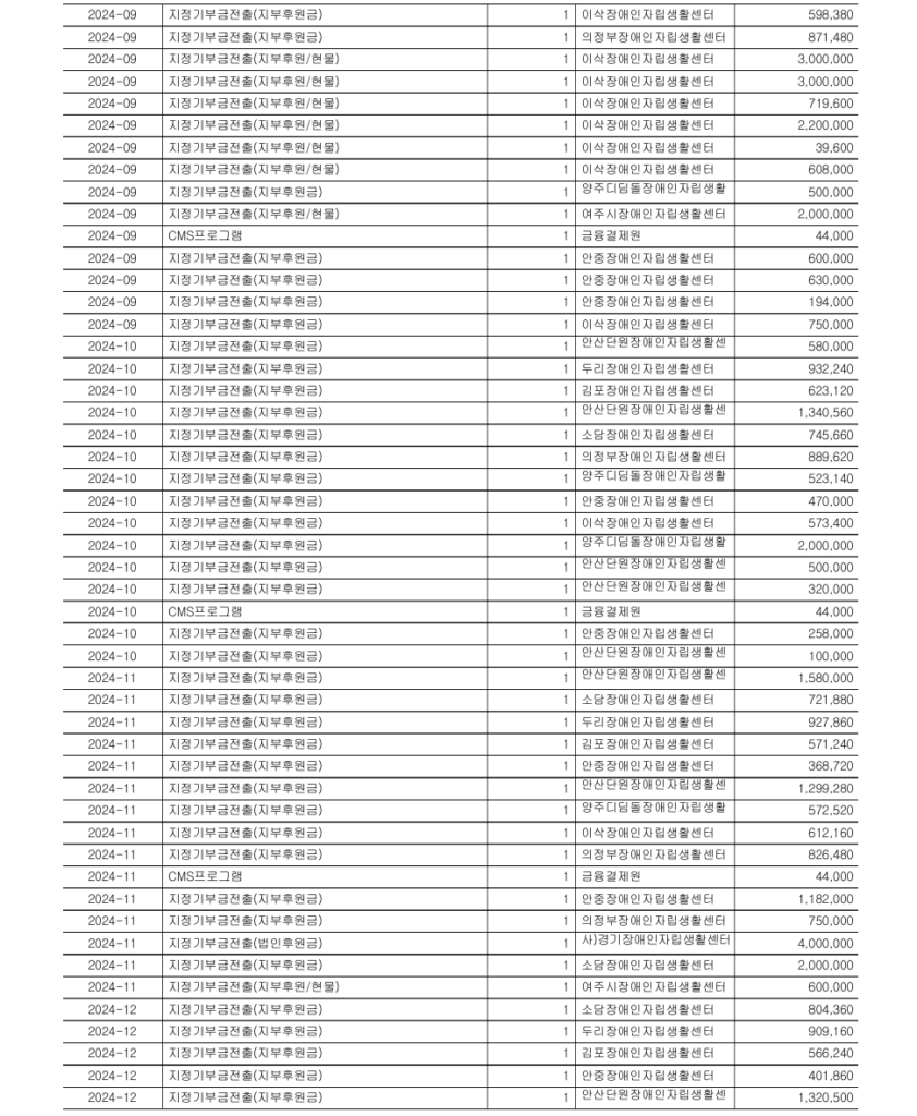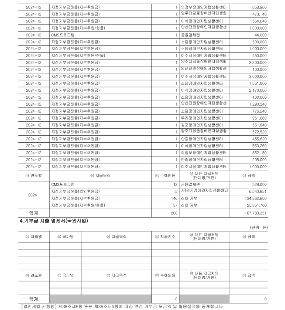 2025.02.19 공시한 내용이 삭제되어 2024년 결산공시와 기부금 모금액 및 활용실적을 재업로드합니다.